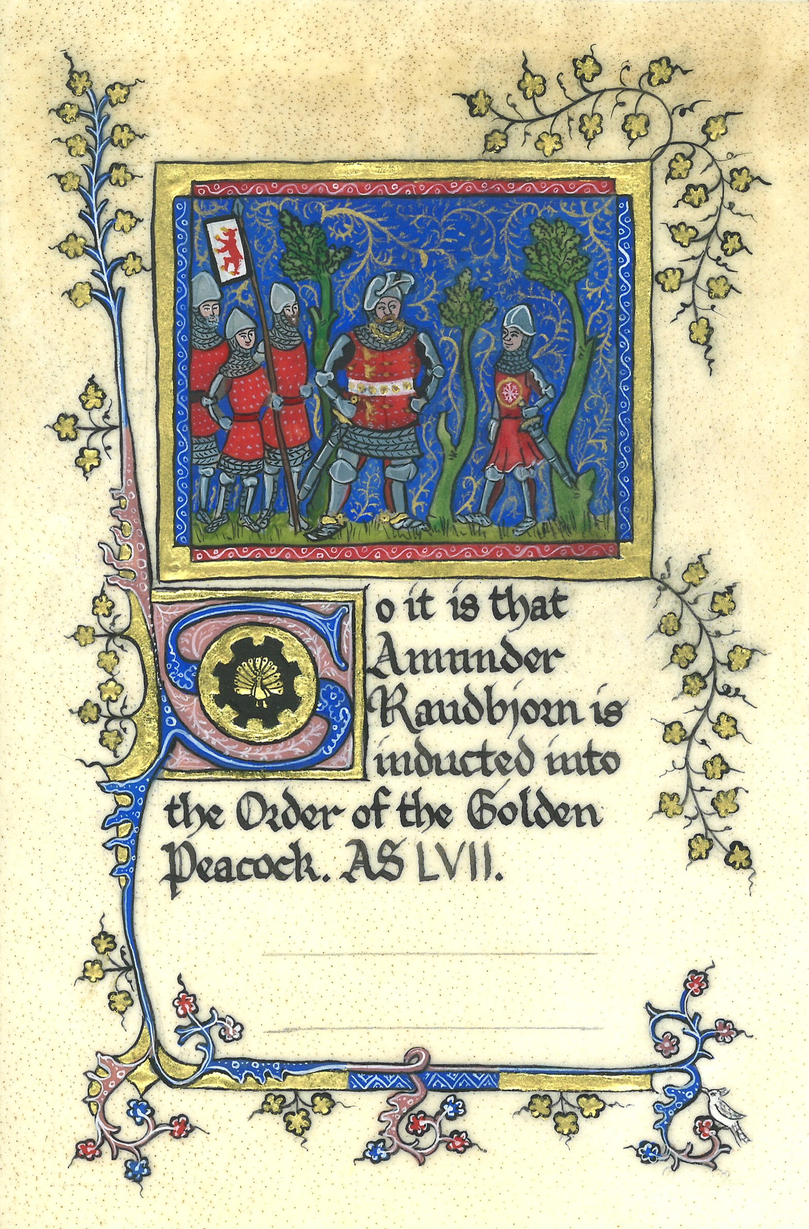So it is that Amundr Raudbjorn is inducted into the Order of the Golden Peacock. AS LVII.