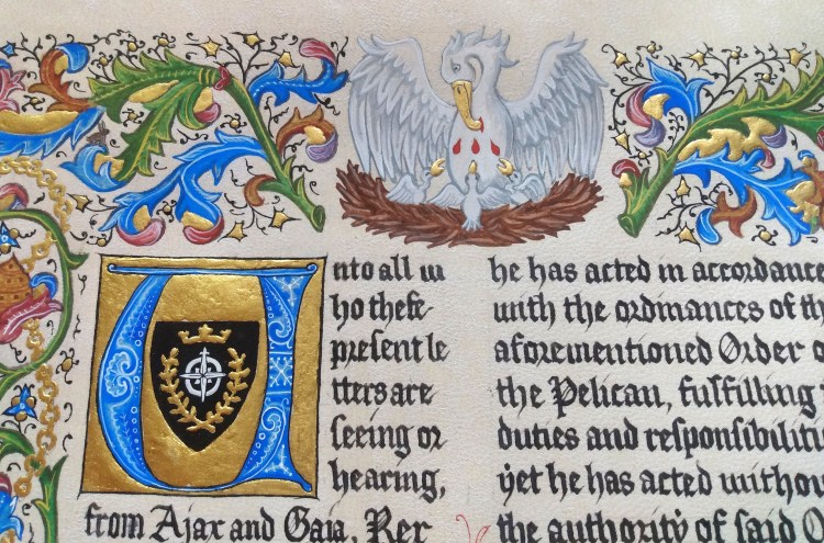 Therefore, in accordance with our ancient rights as sovereigns, we hereby make him a companion of the Order of the Pelican.